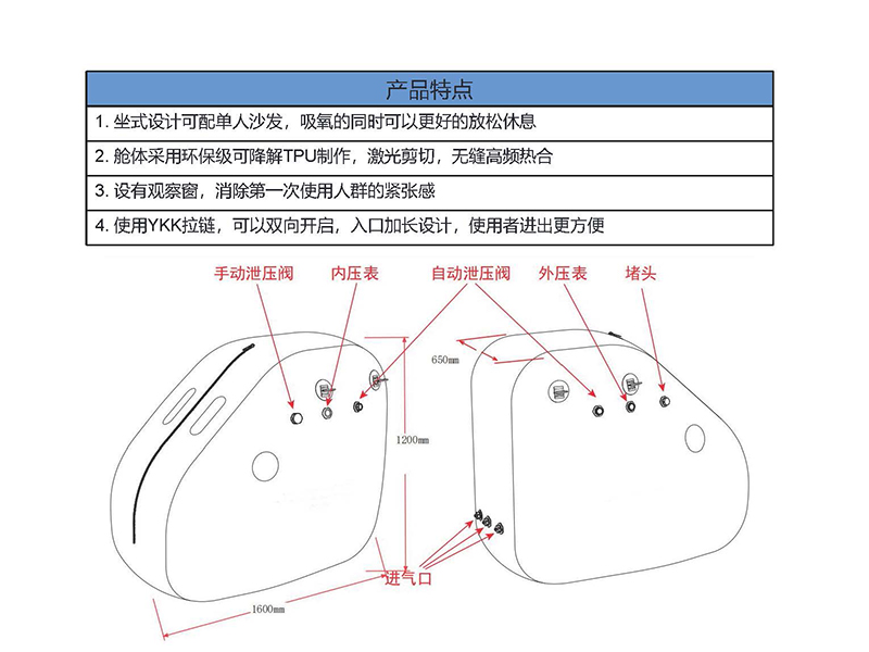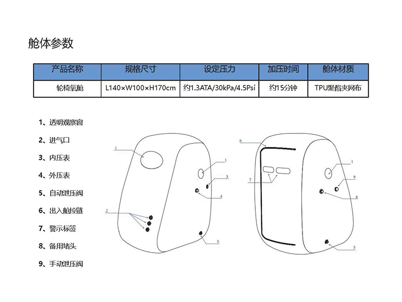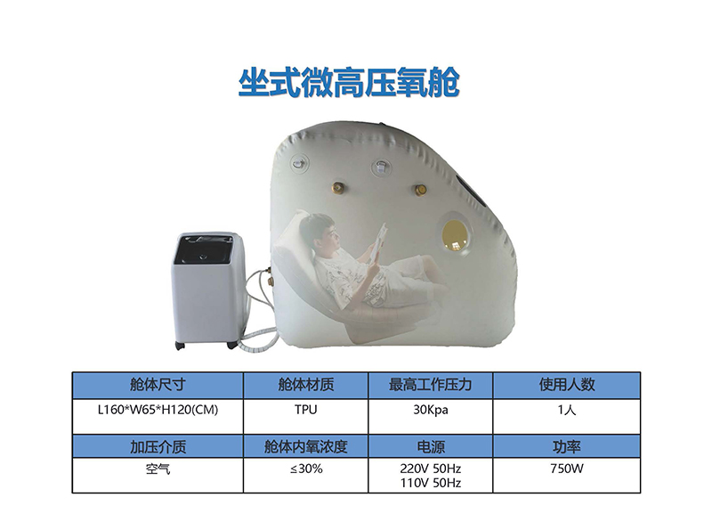 微高壓氧艙是一種提供微壓環(huán)境,保證患者能有效、舒適、安全地在高壓環(huán)境中吸氧,不僅用于養(yǎng)生、美容、治療疾病,還用于因運(yùn)動引起的運(yùn)動性損傷、疲勞的治療。能調(diào)整和提高運(yùn)動員的機(jī)體能力,促進(jìn)運(yùn)動后疲勞的消除,對運(yùn)動性損傷也有很好的療效,可根據(jù)使用人數(shù)定制單人或多人微壓氧艙。